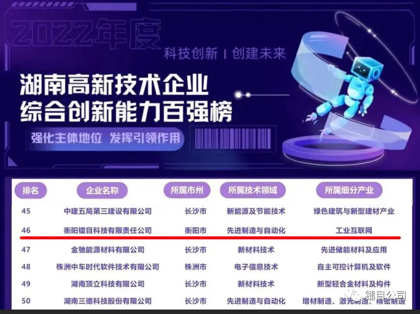 喜訊|鐳目公司榮登湖南高新技術(shù)企業(yè)綜合創(chuàng)新能力百強(qiáng)榜